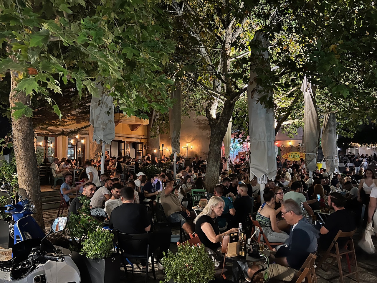 I needed to eat and also to plan my next day’s journey, so, after a delicious souvlaki, I headed back to the hotel for a rest. But in Greece it is impossible to stay inside in the evening and inevitably I was lured to one of the cafes.
