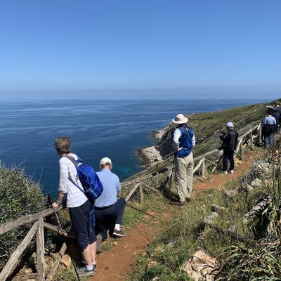 We begin our walk just a couple of kilometres from the sleepy fishing village of Scopello, at the entrance to Parco dell Zingaro. Our walk follows the shore through the typical Mediterranean macchia and we are blessed with views over the azure sea towards Palermo.